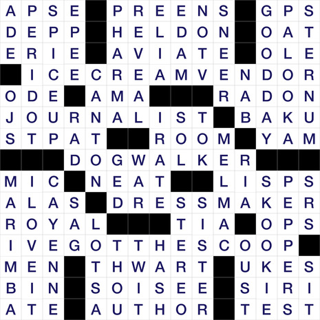 The Puzzle Grid for Today is 15 boxes wide and 15 boxes tall. It’s name is Workplace Revelations. The todays puzzle is classified as an American type of puzzle and was created By David Karp & Edited by Mike Shenk. It has a total of 37 Horizontal Clues and 39 Vertical clues, which need to be solved to completely solve the puzzle.