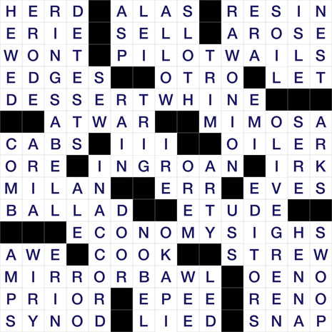 The Puzzle Grid for Today is 15 boxes wide and 15 boxes tall. It’s name is Sad to Say. The todays puzzle is classified as an American type of puzzle and was created By David Alfred Bywaters & Edited by Mike Shenk. It has a total of 37 Horizontal Clues and 41 Vertical clues, which need to be solved to completely solve the puzzle.