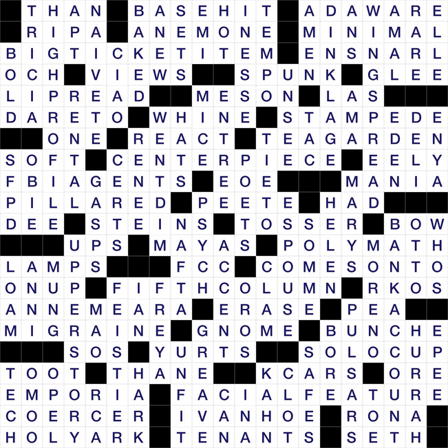 The Puzzle Grid for Today is 21 boxes wide and 21 boxes tall. It’s name is Genuine Article. The todays puzzle is classified as an American type of puzzle and was created by Gary Larson & Amy Ensz & Edited by Mike Shenk. It has a total of 64 Horizontal Clues and 76 Vertical clues, which need to be solved to completely solve the puzzle.