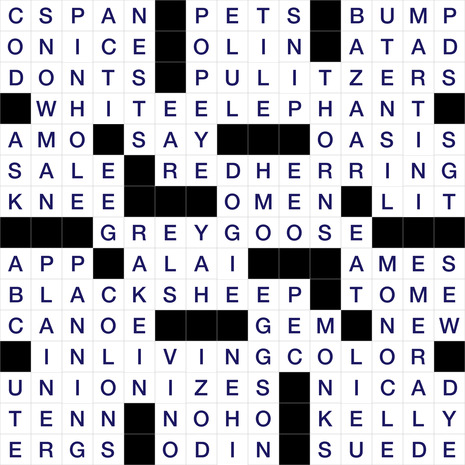 The Puzzle Grid for Today is 15 boxes wide and 15 boxes tall. It’s name is Dyeing Breeds. The todays puzzle is classified as an American type of puzzle and was created By Marc Goldstein & Edited by Mike Shenk. It has a total of 35 Horizontal Clues and 41 Vertical clues, which need to be solved to completely solve the puzzle.