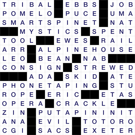 The Puzzle Grid for Today is 15 boxes wide and 15 boxes tall. It’s name is Stick Around. The todays puzzle is classified as an American type of puzzle and was created By Justin Werfel & Edited by Mike Shenk. It has a total of 38 Horizontal Clues and 38 Vertical clues, which need to be solved to completely solve the puzzle.