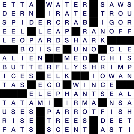 The Puzzle Grid for Today is 15 boxes wide and 15 boxes tall. It’s name is Land and Sea. The todays puzzle is classified as an American type of puzzle and was created By Alexander Liebeskind & Edited by Mike Shenk. It has a total of 37 Horizontal Clues and 39 Vertical clues, which need to be solved to completely solve the puzzle.