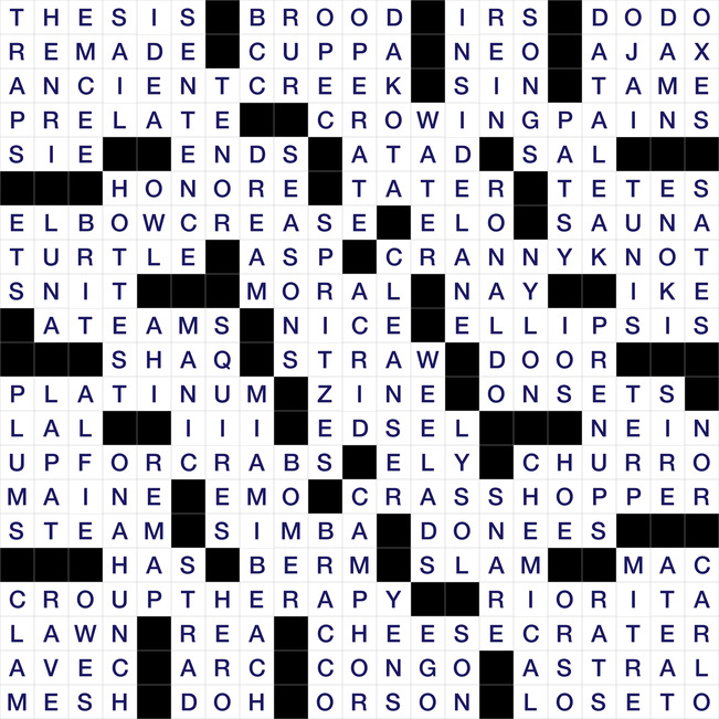 The Puzzle Grid for Today is 21 boxes wide and 21 boxes tall. It’s name is Crave Matters. The todays puzzle is classified as an American type of puzzle and was created by Mike Shenk & Edited by Mike Shenk. It has a total of 69 Horizontal Clues and 71 Vertical clues, which need to be solved to completely solve the puzzle.