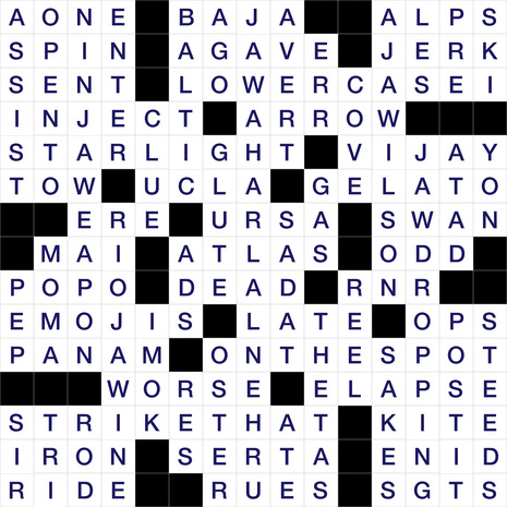 The Puzzle Grid for Today is 15 boxes wide and 15 boxes tall. It’s name is Agape. The todays puzzle is classified as an American type of puzzle and was created By Hal Moore & Edited by Mike Shenk. It has a total of 39 Horizontal Clues and 37 Vertical clues, which need to be solved to completely solve the puzzle.