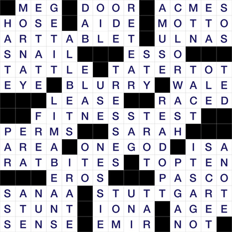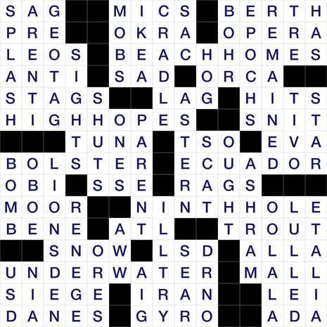 The Puzzle Grid for Today is 15 boxes wide and 15 boxes tall. It’s name is Night Vision. The todays puzzle is classified as an American type of puzzle and was created By Alan Siegel & Edited by Mike Shenk. It has a total of 35 Horizontal Clues and 41 Vertical clues, which need to be solved to completely solve the puzzle.