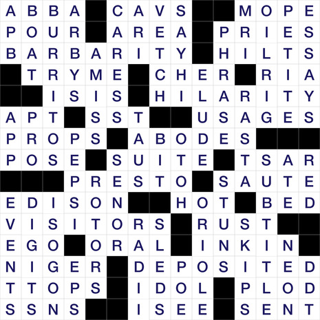 The Puzzle Grid for Today is 15 boxes wide and 15 boxes tall. It’s name is Just Ignore It. The todays puzzle is classified as an American type of puzzle and was created By Zhouqin Burnikel & Edited by Mike Shenk. It has a total of 39 Horizontal Clues and 39 Vertical clues, which need to be solved to completely solve the puzzle.