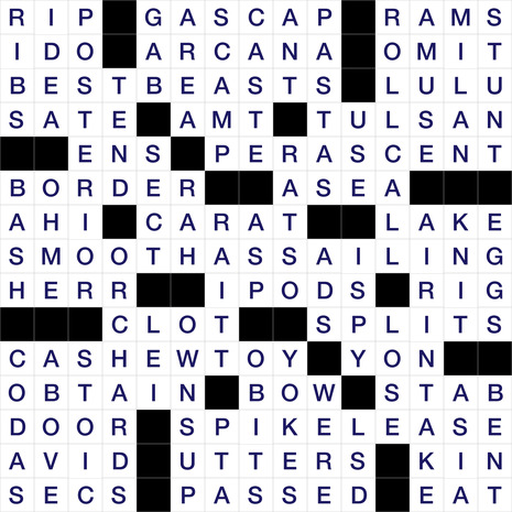 The Puzzle Grid for Today is 15 boxes wide and 15 boxes tall. It’s name is Hidden Asset. The todays puzzle is classified as an American type of puzzle and was created By David Alfred Bywaters & Edited by Mike Shenk. It has a total of 37 Horizontal Clues and 41 Vertical clues, which need to be solved to completely solve the puzzle.