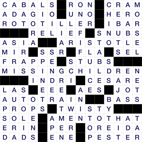 The Puzzle Grid for Today is 15 boxes wide and 15 boxes tall. It’s name is No Kidding!. The todays puzzle is classified as an American type of puzzle and was created By Mike Shenk & Edited by Mike Shenk. It has a total of 37 Horizontal Clues and 41 Vertical clues, which need to be solved to completely solve the puzzle.