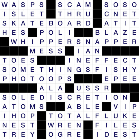 - 42. Suspicious comment regarding 17-, 23-, 47- and 59-Across?SOMETHINGSFISHY