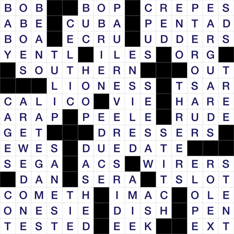 The Puzzle Grid for Today is 15 boxes wide and 15 boxes tall. It’s name is Fit to a T. The todays puzzle is classified as an American type of puzzle and was created By Jeff Stillman & Edited by Mike Shenk. It has a total of 41 Horizontal Clues and 33 Vertical clues, which need to be solved to completely solve the puzzle.